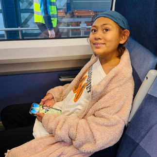 Travelling by train to GOSH or by car to The Royal Marsden (Sutton) or Southampton General gives her a small sense of normality. She loves looking out at the scenery, watching trains and people, and stopping by little counter shops like #lolascupcakes