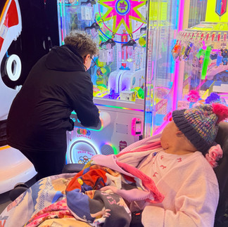 So when Maya’s other best friend, Loxley, arrived with his lovely mum Esther at Lion Ward around 10:45am, Maya was still there — hungry, tired, and waiting to be taken down to theatre. Had she gone in at 9am, we would have been finished by midday or early afternoon. Maya had plans: she wanted to show Loxley the Brunswick Centre — Amorino ice cream, bubble tea, and of course, the arcade.