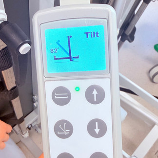 Eighteen minutes. That’s how long she stood on the tilt table — upright at 82°, strapped in, pushing against gravity and everything her body has been through. Eighteen minutes might not sound like much, but in Maya’s world, it’s huge. Another hard-earned win in a day full of them.